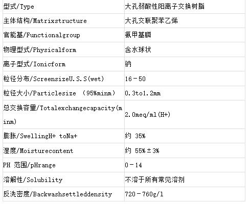 | 產(chǎn) 品: 特種離子交換樹脂 | 型 號(hào):高鹽水除鈣鎂螯合樹脂Tulsimer???CH-93 |