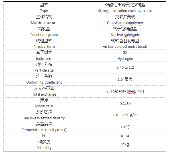 Tulsimer? T-42基本特性如下,有耐高溫,耐酸堿,交換容量高等優點。