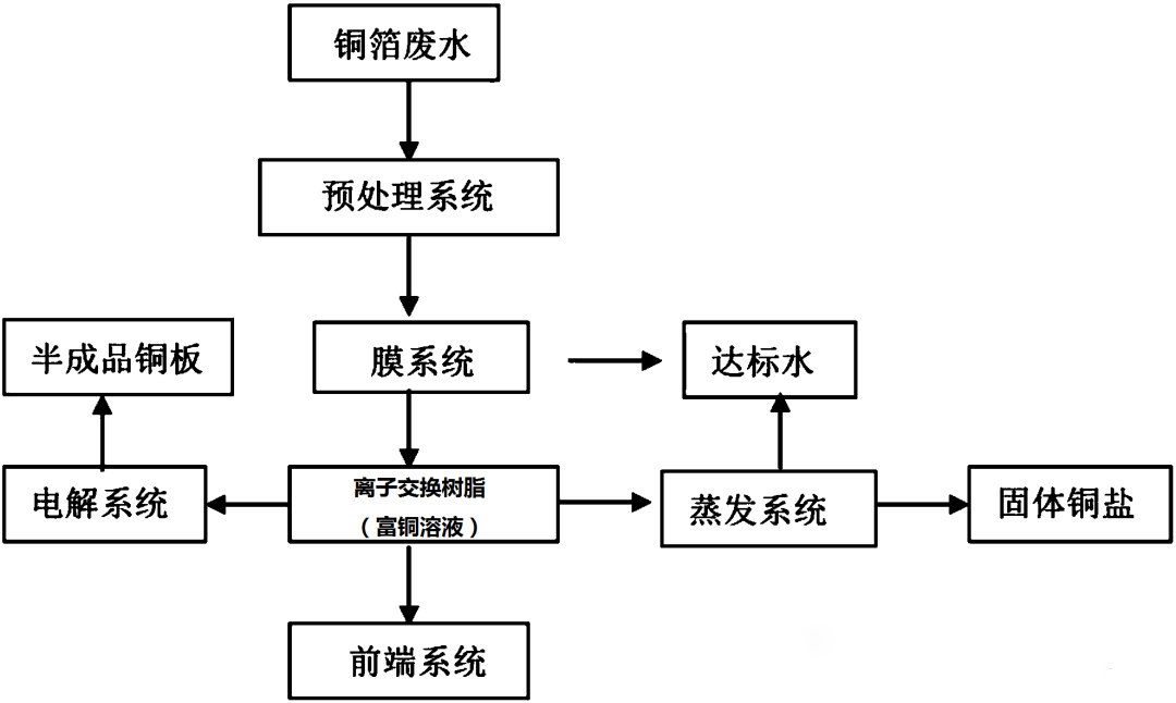 膜分離法在處理過程中,由于銅箔廢水中為硫酸體系,一價鹽分離效果不理想。可以超濾膜的使用作為離子交換段或深度膜濃縮段的這個前處理工藝。